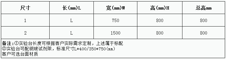 钢木实验台立柱:采用40×60mm,厚壁为1.5或2.0mm方管焊接制作而成,表面经酸洗、磷化作防锈处理,再静电粉沫喷涂EPOXY防护层做耐酸碱防腐蚀表面处理,再进行环氧树脂塑粉高温固化处理,整体稳重合理,防酸碱抗腐蚀性能极佳,框架静态承重﹥300公斤;
